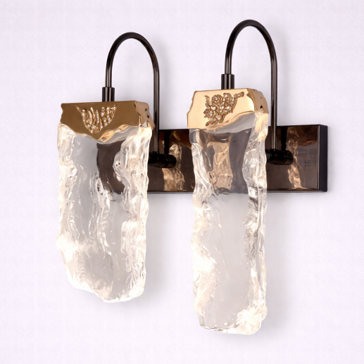A premium wall light featuring textured crystal-like glass elements paired with a refined gold finish. Its artistic design and warm LED illumination create a luxurious ambiance—perfect for accent walls and modern interiors.