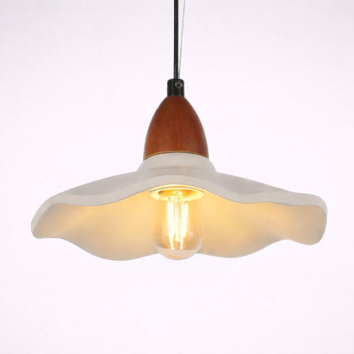 A minimal and elegant pendant light featuring a smooth ceramic shade with soft wavy edges. Its cement color finish and warm illumination create a calm and modern aesthetic—perfect for kitchens, dining areas, and contemporary interiors.