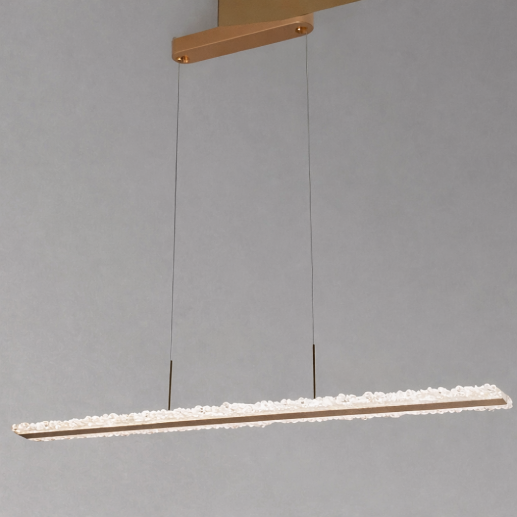 A sleek and contemporary linear pendant hanging light featuring a crystal-textured edge with a refined gold finish. Designed to deliver both elegance and functionality, it’s perfect for dining areas, offices, and modern interiors.