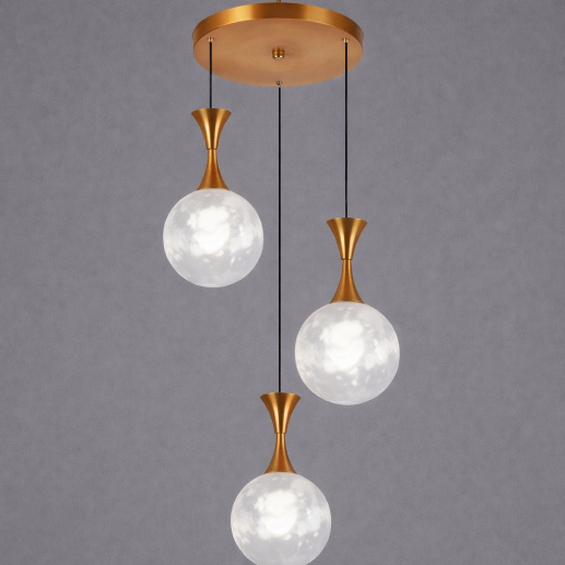 The ARC7140-3 White Hanging Light features a modern triple-pendant design with elegant frosted white glass globe shades and refined copper-finished accents. Suspended at varying heights, it creates a soft and soothing illumination—perfect for dining areas, living spaces, and contemporary interiors