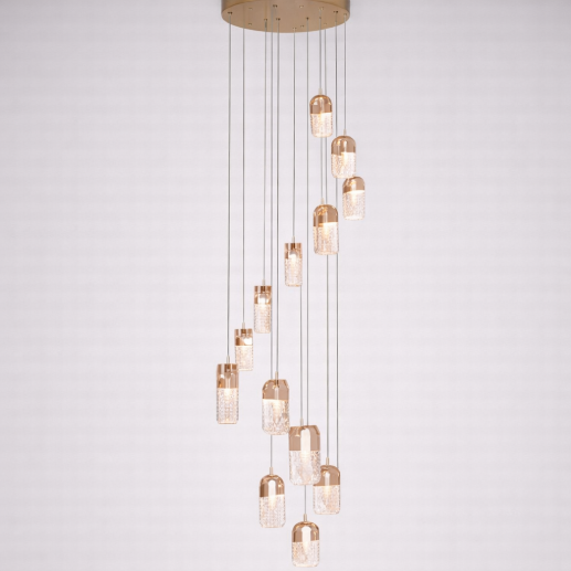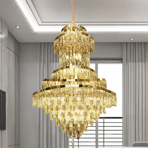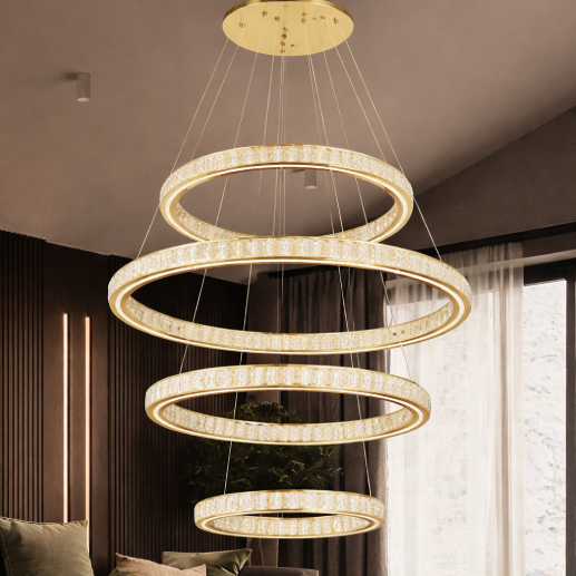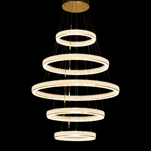 Chandelier lights are decorative light fixtures that are typically suspended from the ceiling and feature multiple arms or branches, each holding one or more bulbs or candles. Chandeliers are known for their elegant and ornate designs, making them popular choices for enhancing the aesthetics of various interior spaces, including dining rooms, living rooms, entryways, and even bedrooms