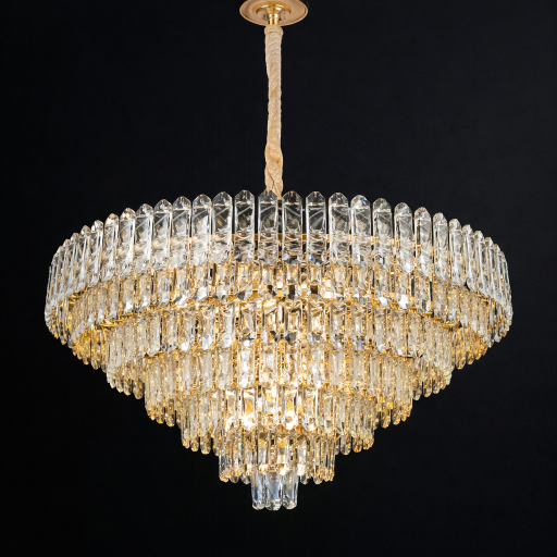 The DY17033-800 Aurora Prism Chandelier features a stunning multi-tier crystal design with a refined gold finish. Its layered prism structure creates a dazzling glow, making it a perfect centerpiece for luxurious and modern interiors.