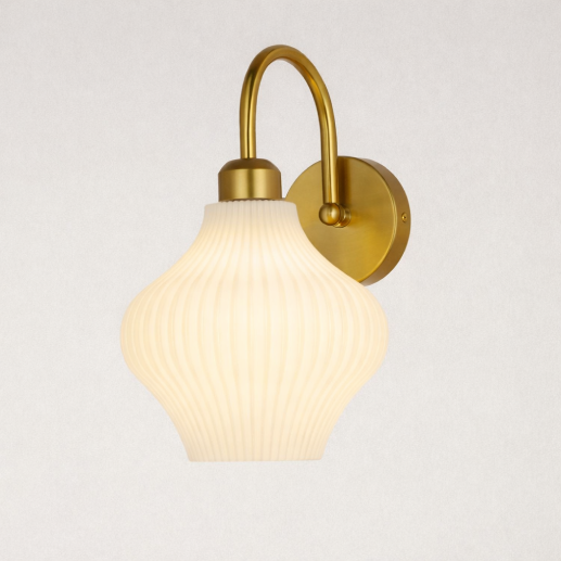 The DY-ZD007 Classic Curve Wall Light features a beautifully contoured ribbed diffuser paired with a graceful curved arm in a refined copper and white finish. Its warm ambient glow and timeless silhouette make it a perfect blend of classic elegance and modern design.