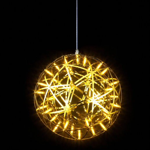 The LDC 304 Sphere Pendant Light features a luxurious geometric globe design with a stunning chromium gold finish. Its intricate starburst structure with integrated LED elements creates a radiant lighting effect, adding a bold and elegant statement to modern interiors, living rooms, and premium spaces.