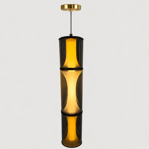 A modern multi-layer cylindrical pendant hanging light featuring a sophisticated smoke glass finish with warm inner illumination. Its sleek vertical design adds depth and elegance, making it perfect for contemporary interiors and accent lighting.