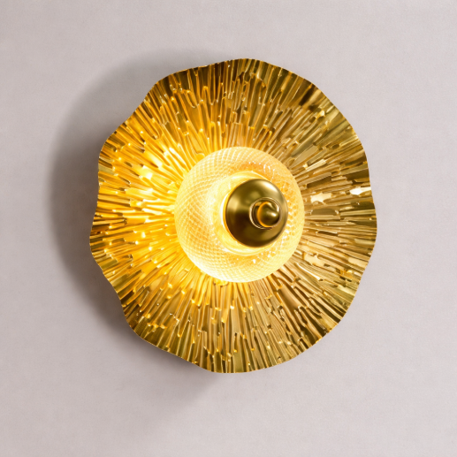The LGB9463 Wall Light features an elegant circular design with a radiant antique copper finish paired with textured amber glass. Its artistic sunburst pattern enhances the warm LED illumination, creating a rich and inviting ambiance. Designed to be both decorative and functional, this wall light adds a luxurious and contemporary touch to any interior space.