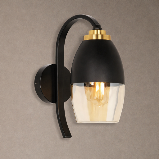 The LGW8301 Wall Light features a graceful curved arm design combined with a matte black finish and warm amber glass shade. Accented with subtle gold detailing, it creates a soft ambient glow—perfect for enhancing modern and contemporary interiors.