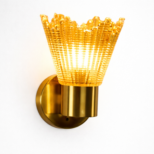 The LGW8625 Wall Light features a striking textured amber glass shade with a premium gold finish, creating a rich and luxurious lighting effect. Its unique fluted design enhances the glow, casting beautiful patterns while providing warm ambient illumination. Perfect for modern and elegant interiors, this wall light adds a decorative and sophisticated touch to any space.