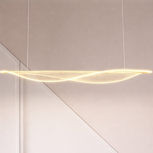 The R12-12M Infinity Wave Pendant Light features a sleek flowing wave design with a refined copper gold finish and a textured acrylic body. Its elegant form and integrated LED lighting create a soft, luxurious glow, making it a perfect centerpiece for modern interiors.