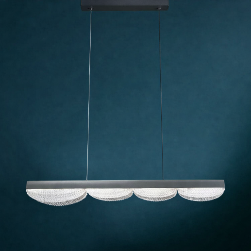 A sleek linear pendant hanging light featuring a modern grey finish with textured acrylic diffusers. Designed to provide uniform illumination with a contemporary aesthetic, it’s perfect for dining areas, offices, and modern interiors.