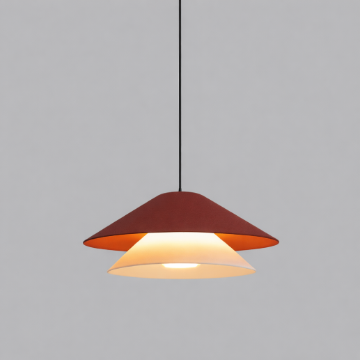 The CL368-1 RD Pendant Light features a stylish layered shade design with a bold red and white color combination. Its modern aesthetic and soft LED illumination create a warm and inviting ambiance, making it an ideal choice for contemporary interiors and decorative lighting setups.