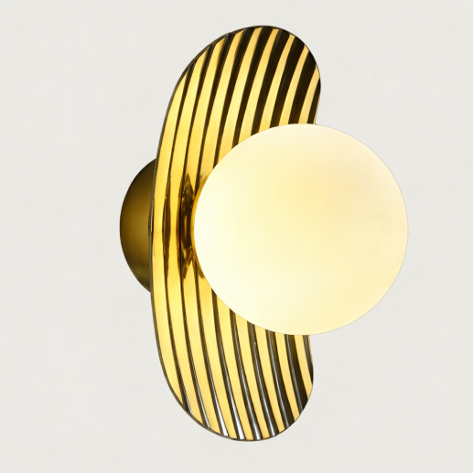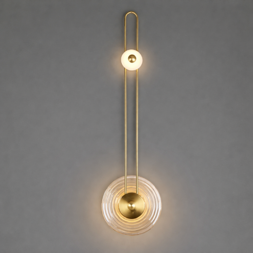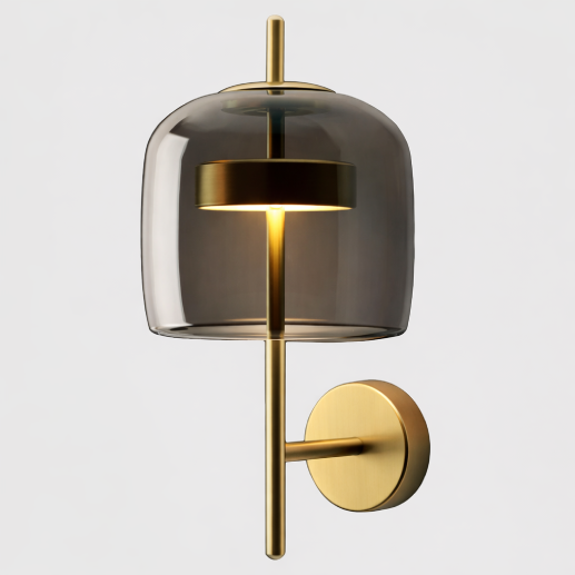 A sleek and elegant vertical wall light featuring a refined copper finish with decorative glass elements, designed to create a warm ambient glow while enhancing modern interior aesthetics.