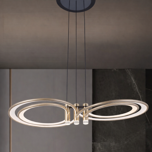 A modern designer pendant hanging light featuring an elegant double-ring structure with a sleek grey finish. Its contemporary geometric design delivers a soft, balanced illumination, making it perfect for stylish living spaces and modern interiors.