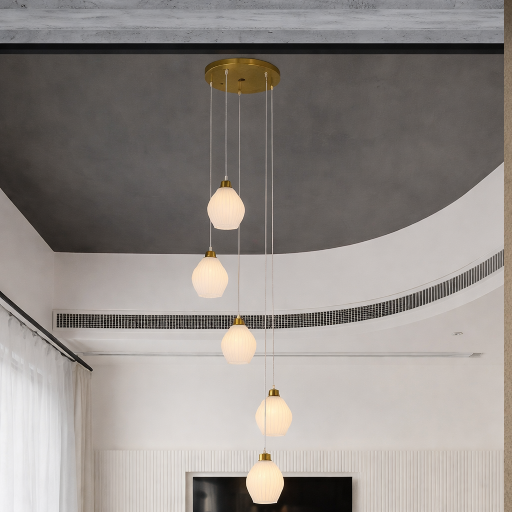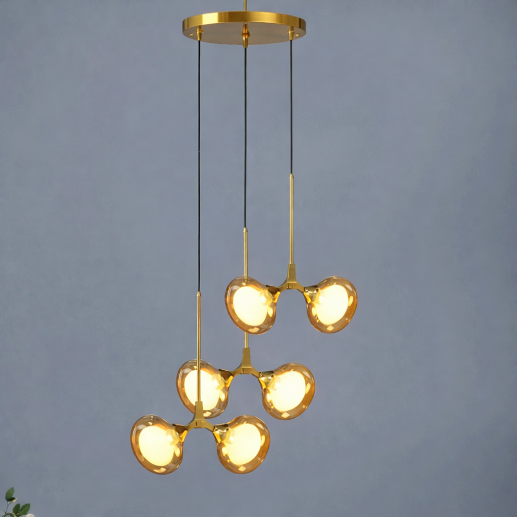 A striking modern pendant hanging light featuring an artistic multi-ring floral-inspired design with a sleek grey finish. Its elegant circular arrangement creates a soft and balanced illumination, perfect for contemporary interiors and statement spaces.