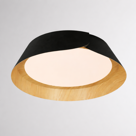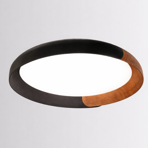 TheDY-2118 Dual Tone Ring Ceiling Light features a sleek circular design with a striking combination of matte black and rich mahogany finish. Its integrated LED lighting delivers soft, uniform illumination, creating a modern yet warm ambiance for contemporary interiors.