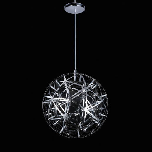 The LDC 304 Sphere Pendant Light features a striking geometric globe design crafted with a polished chromium finish and stainless steel structure. Its intricate starburst framework delivers a bold contemporary look while providing brilliant illumination—perfect for modern interiors, living rooms, and statement spaces.